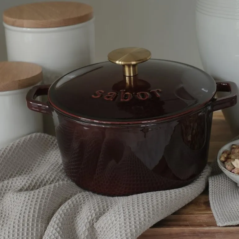 Sabor støpejernsgryte 2 L zinfandel brass er et mesterverk av robusthet og kvalitet, designet for å vare i flere generasjoner. Den er kjent for sin evne til å holde og distribuere varmen jevnt, noe som gjør at du ofte kan bruke bare halvparten så mye varme som du vanligvis ville gjort. Dette gjør gryten ideell for retter som krever høy og jevn temperatur, samt for langtidssteking eller -koking. Den er spesielt godt egnet for gryteretter og steker, hvor kjøttet først kan brunes i en panne før det stekes ferdig i ovnen i støpejernsgryten.