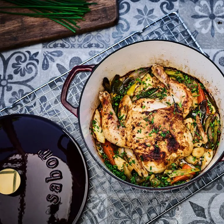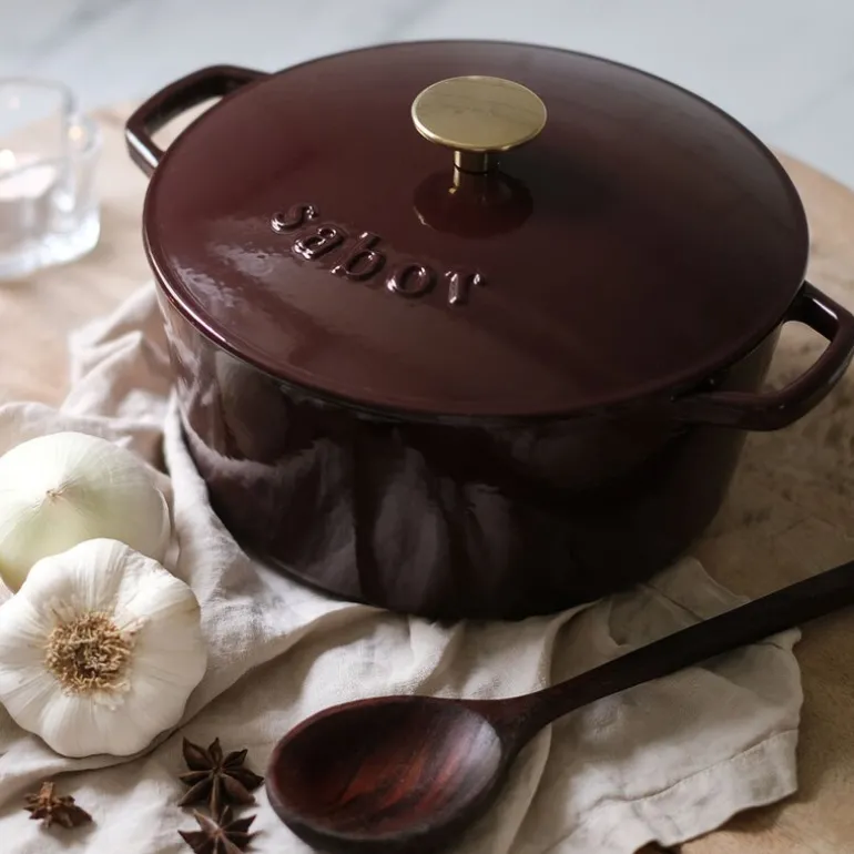 Sabor støpejernsgryte på 4,4L i zinfandel/brass er en solid investering for ditt kjøkken. Den robuste konstruksjonen av støpejern sørger for jevn varmefordeling og utmerket varmelagring, noe som gjør den ideell for langtidskoking og retter som krever høy temperatur. Perfekt for alt fra gryteretter til det trendy grytebrødet, vil denne gryten gi deg resultater i toppklasse hver gang. Takket være dens slitesterke emaljebelegg kan du bruke den i mange år, så lenge du følger de enkle rengjøringsinstruksjonene. Sabor kombinerer funksjonalitet og design, skreddersydd for det skandinaviske kjøkken, og gir deg følelsen av kontroll og smaken av suksess.