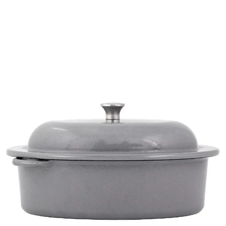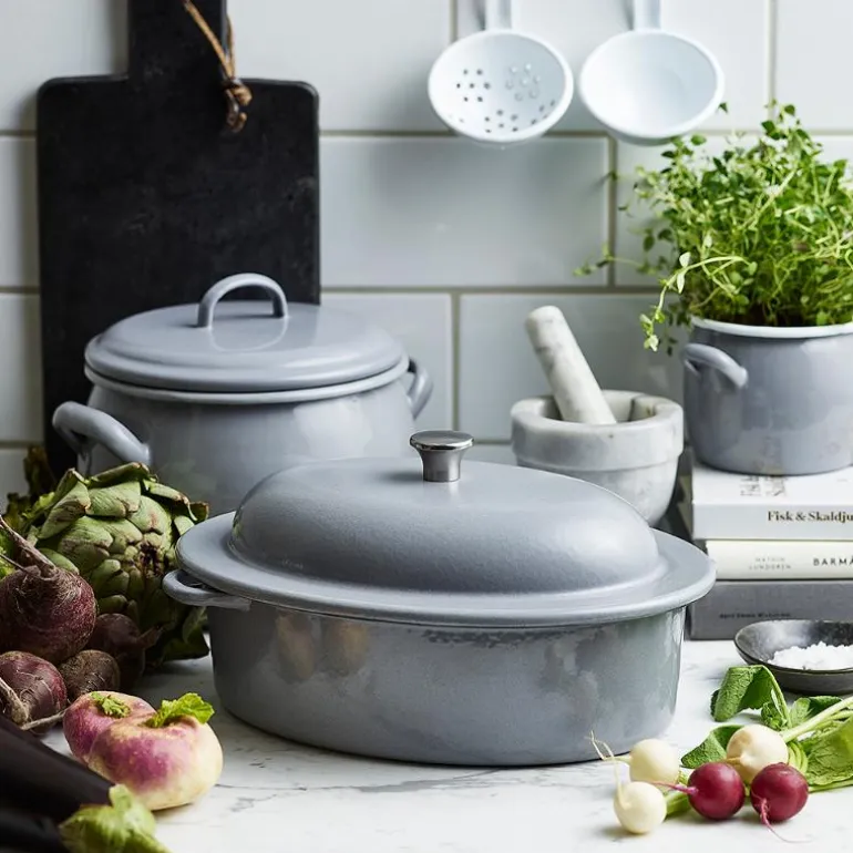Kockums klassiske støpejernsgryte på 4 liter er laget av 100% resirkulert jern og er en allsidig gryte som passer perfekt til steking, kokning og baking. Den grå emaljerte innsiden er spesielt utviklet for å være slitesterk og ripebestandig. Grytens overflate bidrar til en høyere temperaturbestandighet, noe som gjør den ideell for retter som skal brynes eller karamelliseres.