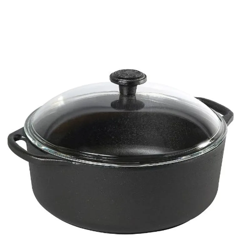 Rund stekegryte i støpejern 5,5 l – med glasslokk.