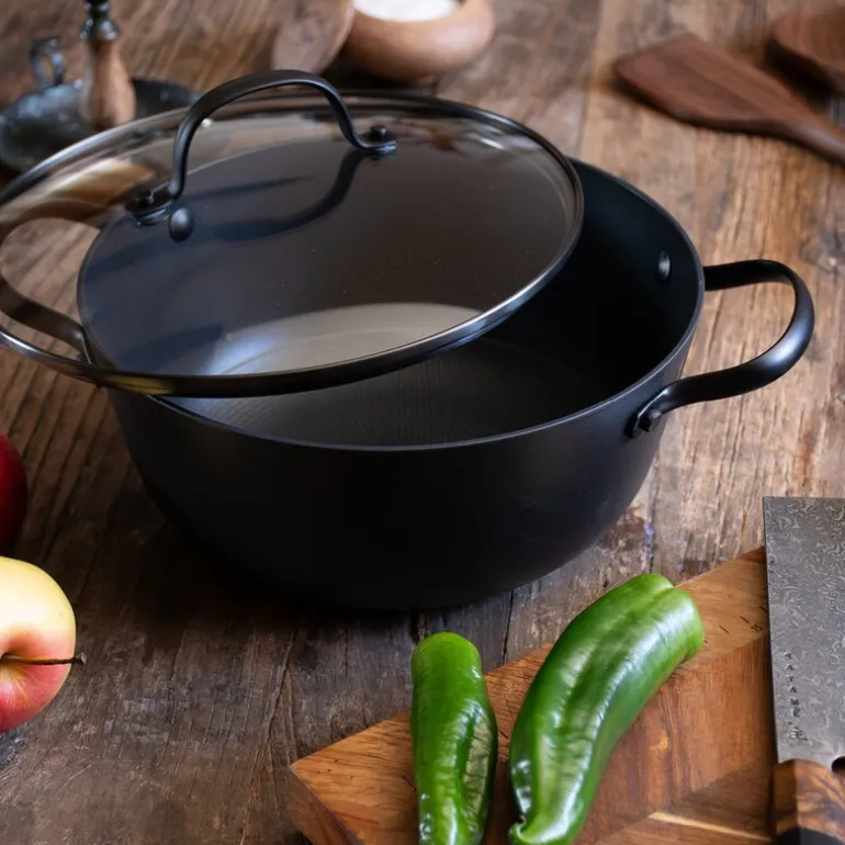 Satake støpejernskasserolle med Honeycomb keramisk belegg og glasslokk på 24 cm er en videreutvikling av suksessen fra Satake Lettvektsstøpejern. Denne nye serien kombinerer stilrent design med avansert teknologi, der den keramiske non-stick-belegningen er fri for tilsatt PFAS.