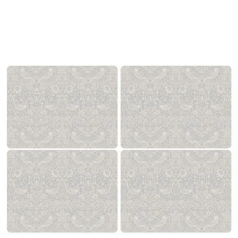 Skap en harmonisk og elegant borddekking med dette settet på fire bordbrikker fra Morris & Co., dekorert med det ikoniske Strawberry Thief-mønsteret i subtile nyanser av grått og hvitt. Med en størrelse på 30 x 40 cm gir brikkene god plass til tallerkener og bestikk – og setter prikken over i-en på både hverdagsmåltider og selskaper.