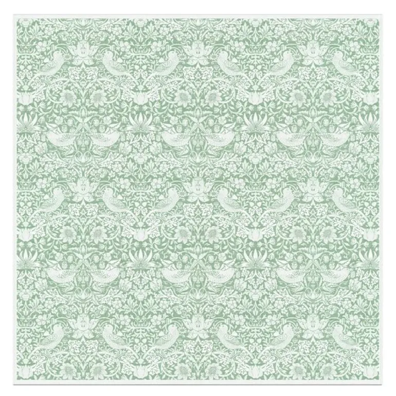 Strawberry Thief duk 150×150 cm grønn fra Ekelund X William Morris er en elegant og dekorativ duk som tilfører borddekkingen et kunstnerisk og tidløst preg. Inspirert av William Morris’ ikoniske Strawberry Thief-mønster, kjennetegnes denne duken av intrikate detaljer med fugler og blomster i en harmonisk grønn fargetone.