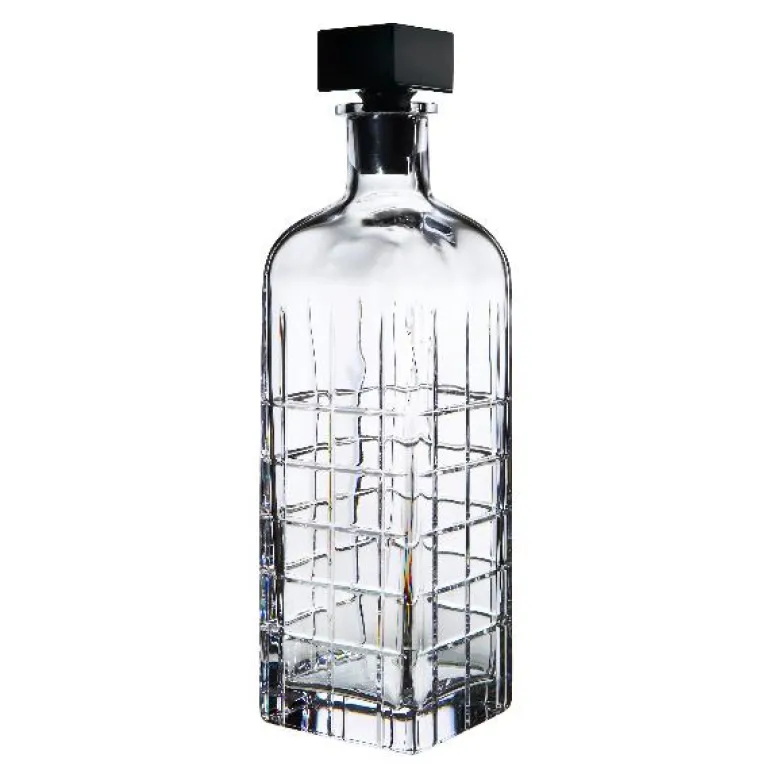 Karaffel med ruteformet slipning og svart topp.
