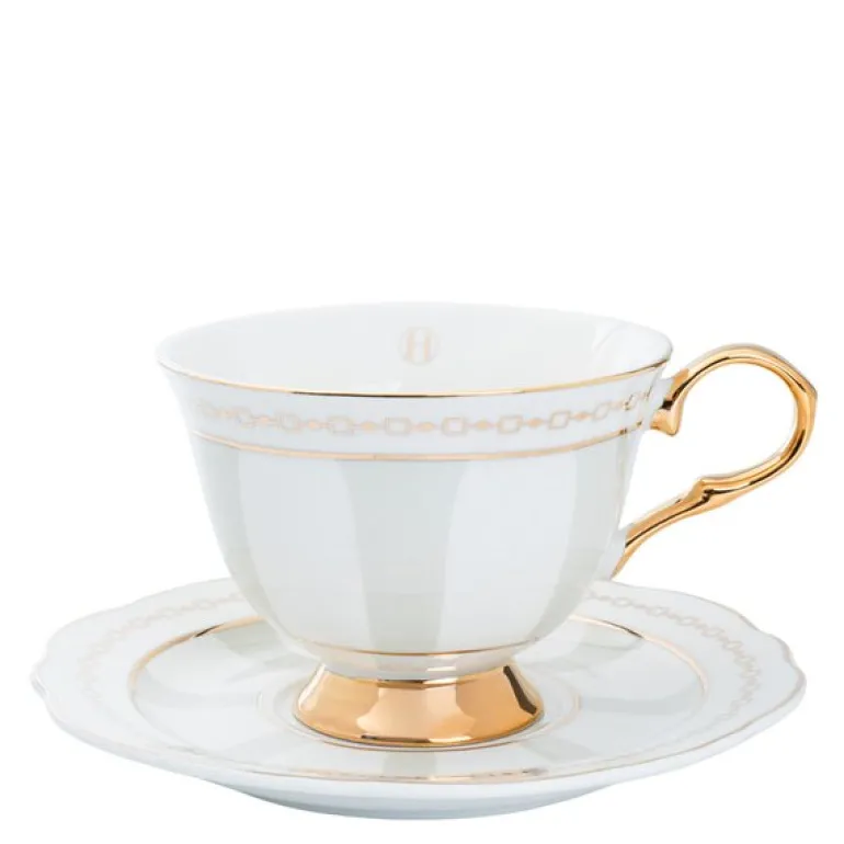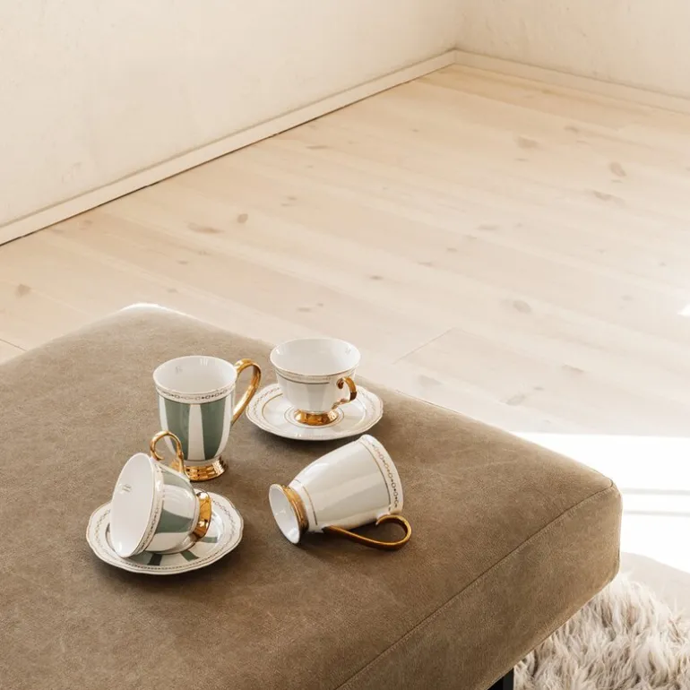 Strisce Tortora kopp med skål fra Hilke bringer et sofistikert preg til enhver kaffestund. Med sin elegante greige nyanse og delikate gulldetaljer er koppen en del av Strisce-kolleksjonen, en serie som kombinerer klassisk design med moderne raffinement. Den luksuriøse utførelsen gjør den til en perfekt gave eller en eksklusiv detalj i eget servise.