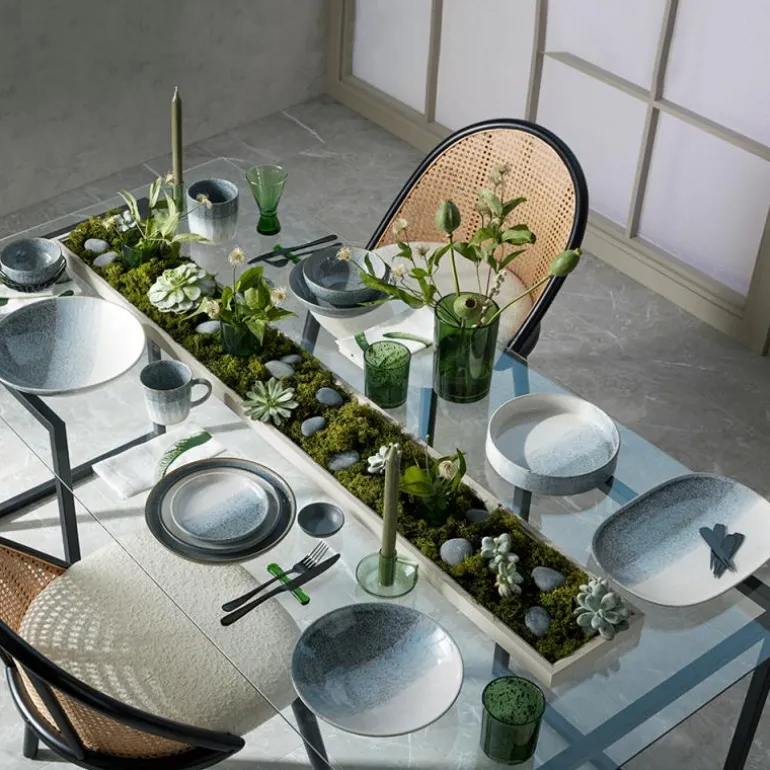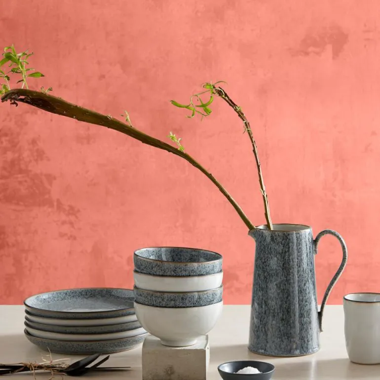 Duse toner av grått.Studio Grey fra Denby Pottery tilbyr vakkert steingods i duse farger som er dekorativt designet og enkelt løfter borddekkingen.Denby produsenter sitt steintøy med lokalt innsamlet leire i fabrikken i England og gir også 10 års garanti på kolleksjonen.Studio Grey tåler ovnsvarme, mikrobølgeovn, fryser og oppvaskmaskin.