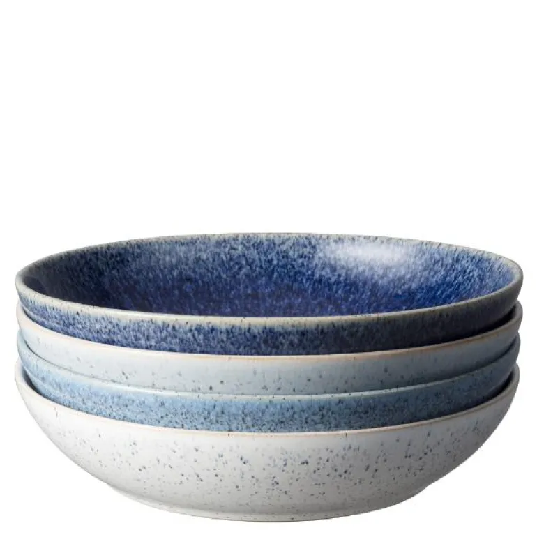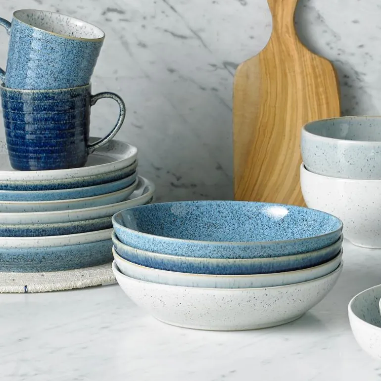 Denbys Studio Blue kommer fra den lyseste dueblå til mørkeste mørkeblå – og alle nyanser i mellom. Blåtonene er like enkle å matche og like tidløse som de er stilige. Man får ikke for mye av det blå og du kan utmerket blande de ulike blåtonene på tallerkener, serveringsfat og skåler for å gi spisebordet en dypere bredde som skaper en ny dimensjon til en ellers tradisjonell borddekking.