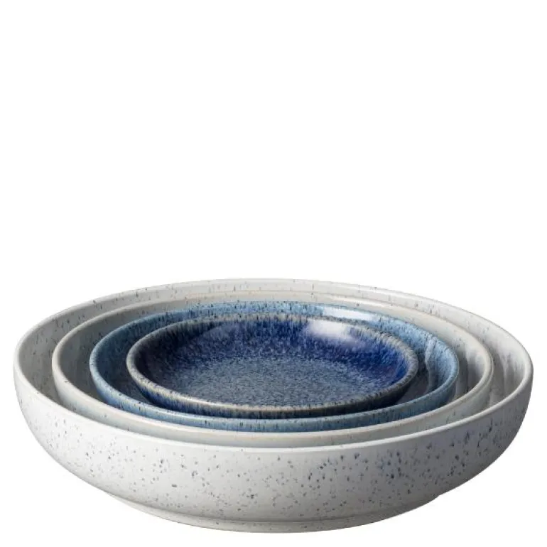 Sett med 4 skåler i serien Studio Blue, fra Denby. Halo fremstilles i England av lokal leire. Hver del av Studio Blue er håndlaget med ferdigheter i keramikk som føres videre gjennom generasjoner.