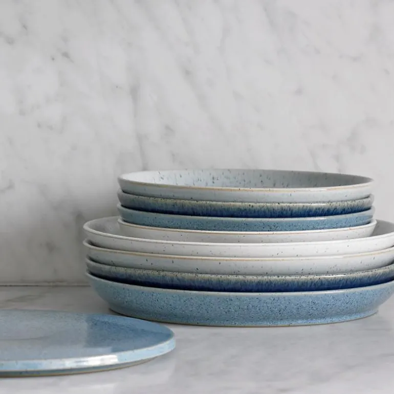 Denbys Studio Blue kommer fra den lyseste dueblå til mørkeste mørkeblå – og alle nyanser i mellom. Blåtonene er like enkle å matche og like tidløse som de er stilige. Man får ikke for mye av det blå og du kan utmerket blande de ulike blåtonene på tallerkener, serveringsfat og skåler for å gi spisebordet en dypere bredde som skaper en ny dimensjon til en ellers tradisjonell borddekking.