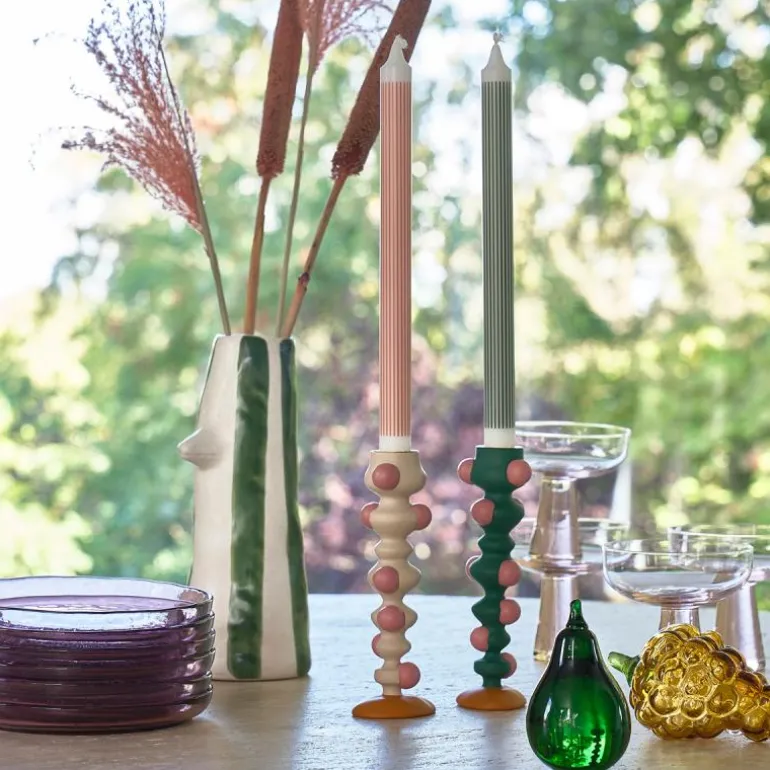 Styles lysestake m/ klumper 18 cm grønn/rosa, fra Villa Collection. Morsom lysestake av polyresin med vakre farger. Polyresin er et lett, men samtidig robust materiale som er enkelt å forme, og som ligner på keramikk. Spre humor og livsbejaende farger i hjemmet med denne unike lysestaken.