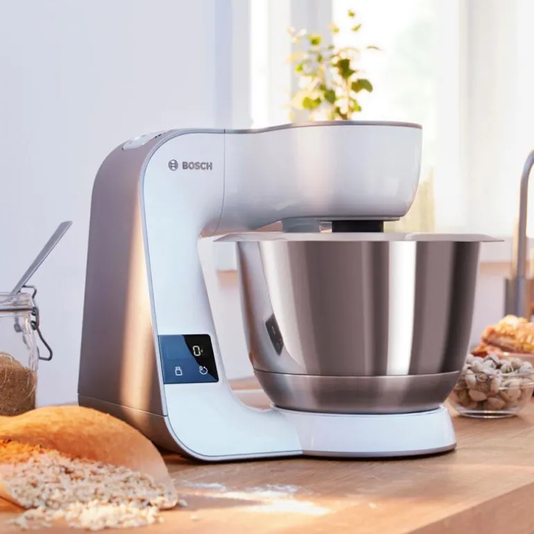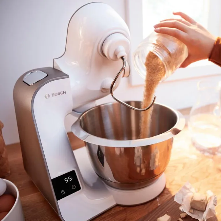 Fleksibel assistent med integrert kjøkkenvekt for variert matlaging og baking. Rustfri stor bolle på 3,9 liter, til opptil 2,7 kg røre eller 1,9 kg gjærdeig. Pulsfunksjon og regulerbar hastighet i 7 trinn for ulike bruksområder.