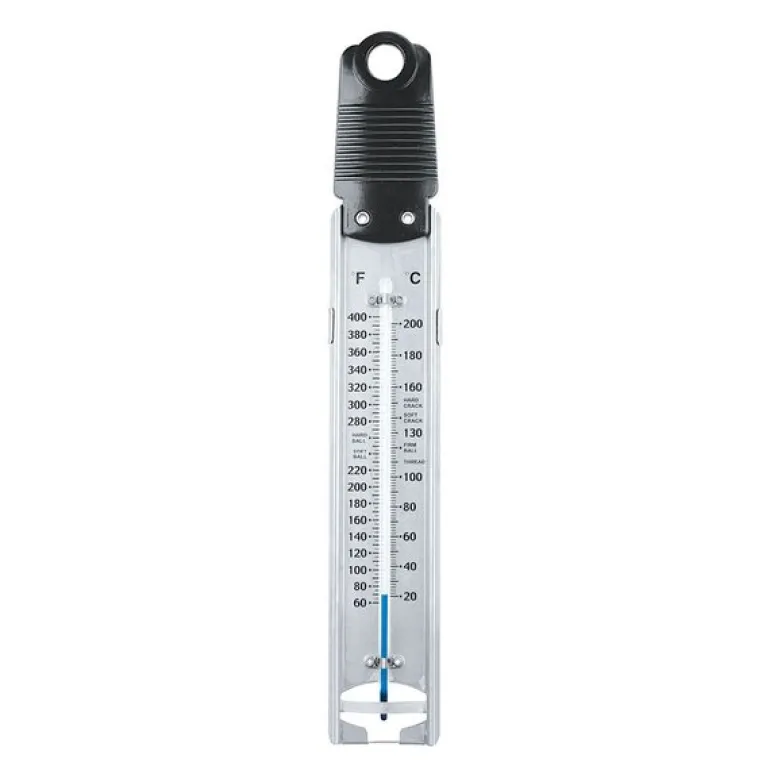 Utstyrt med metallklips for enkel festing på grytekanten. Et nøyaktig og trygt verktøy – helt uten kvikksølv.