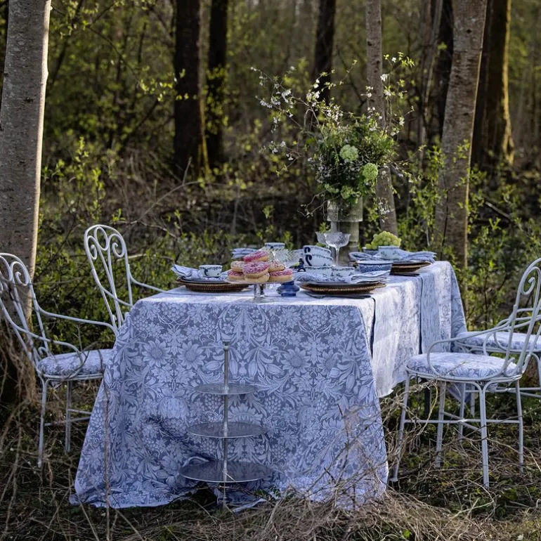 Sunflower duk 150×300 cm mørk blå fra Ekelund X William Morris er en storslått og elegant duk som gir borddekkingen et klassisk og sofistikert preg. Inspirert av William Morris’ ikoniske Sunflower-mønster, har denne duken et detaljert blomstermotiv i en dyp og eksklusiv mørkeblå farge som skaper en raffinert atmosfære.