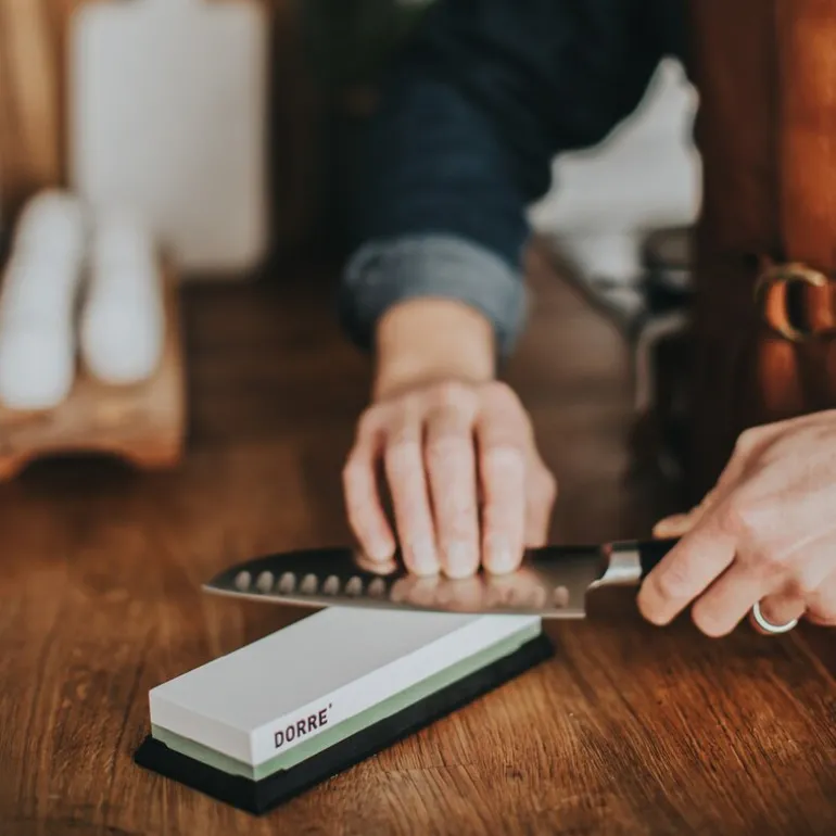 Suri slipestein 1000/3000 fra Dorre gir deg alt du trenger for å holde kjøkkenknivene skarpe og presise.