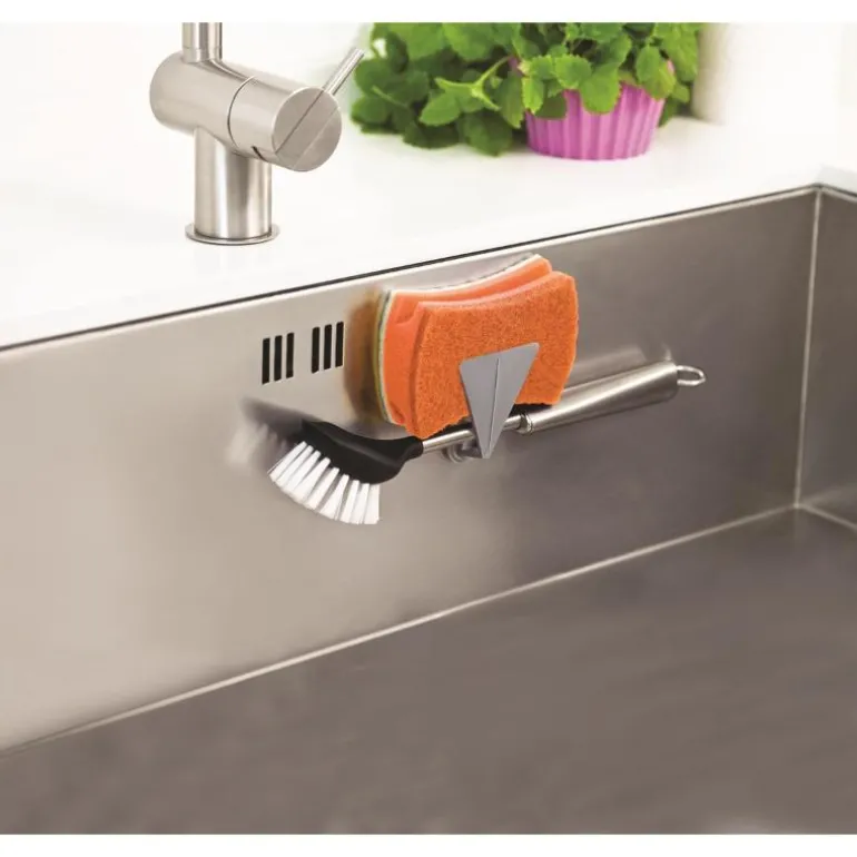 Magnetisk Holder til kjøkkenvasken plasseres diskret nede i vasken ? ute av veien.