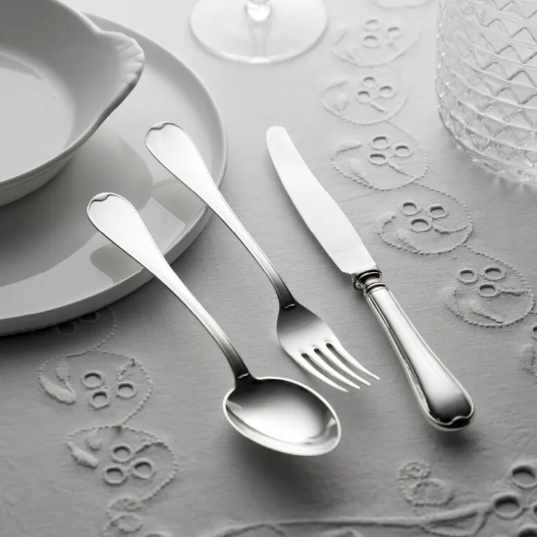 Svensk gaffel 20,5 cm 830 fra Gense. Sølvbestikkserien Svensk har sine røtter fra en original støpeform fra 1700-tallet i Sverige. Med sitt minimalistiske designspråk er det enkelt å kombinere bestikket, og derfor kan det brukes til mange forskjellige borddekkingsstiler og situasjoner. Design: Studio GAB
