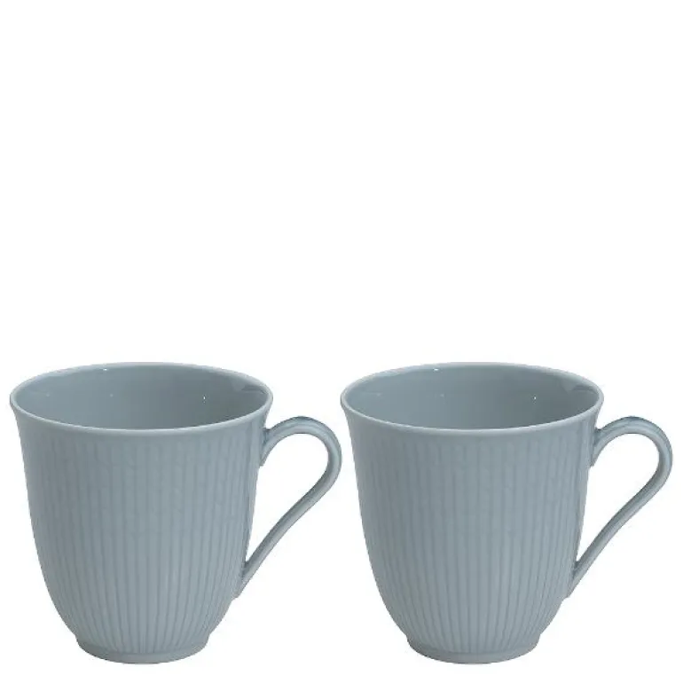 Swedish grace krus 30cl is/grå 2-pk. Et sett med to krus er perfekt som gave til kaffe- og teelskeren. Flott for seg selv eller i kombinasjon med med andre deler. Swedish Grace, er et tidløst ikon – mønsteret er inspirert av grasiøst vaiende hveteaks og bringer harmoni og tradisjon til spisebordet. Den delikate isgrå fargen skaper en følelse av stillhet og ro. Kan vaskes i oppvaskmaskin.