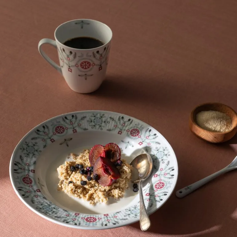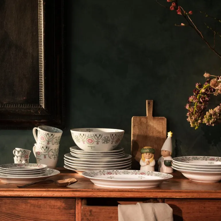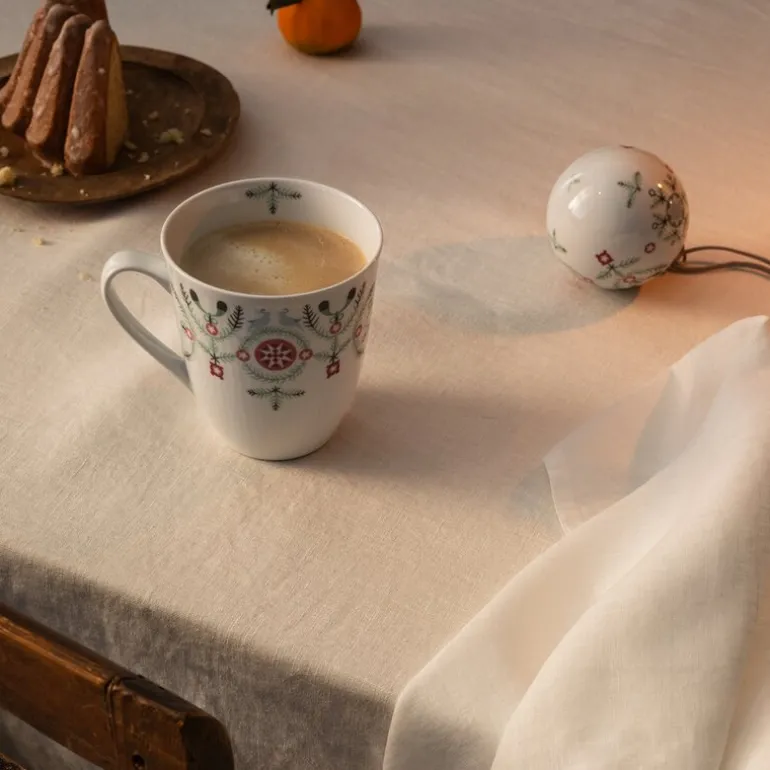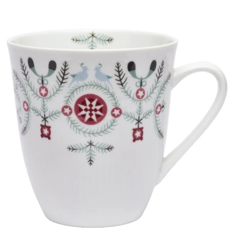 Swedish Grace Winter krus 50 cl fra Rörstrand. Et vakkert større krus (0,5L) fra Rörstrand, dekorert med granbar, misteltein og snøflak. Designet av Katarina Brieditis i en moderne tolkning av Louise Adelborgs klassiske Swedish Grace, skaper julemagi og en koselig atmosfære på bordet. Perfekt størrelse for varme drikker.