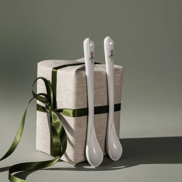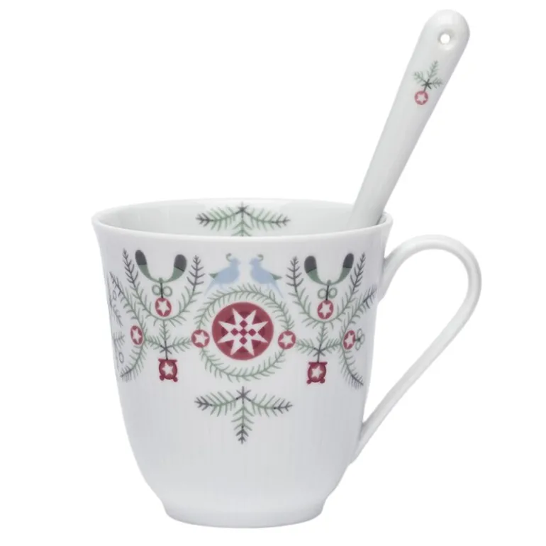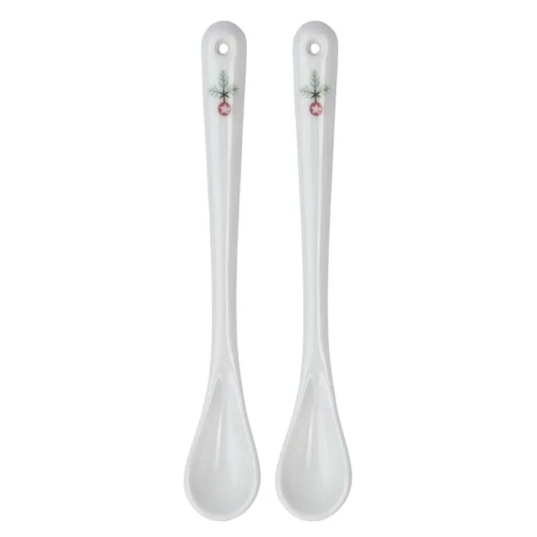 Swedish Grace Winter skje 15 cm 2 stk fra Rörstrand. Disse vakre porselensskjeene fra Rörstrand, 15 cm lange, er perfekte tilskudd til juleborddekkingen. Designet av Katarina Brieditis i en moderne tolkning av Louise Adelborgs klassiske Swedish Grace, forsterker de dine juletradisjoner med et magisk mønster av granbar, misteltein og snøflak. Porselensskjeene er perfekte for servering av rosiner, mandler eller sennep, og er også en flott gave eller samleobjekt til hjemmet.