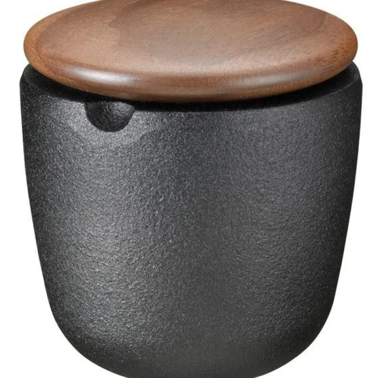 Saltbøsse med lokk i valnøtt. Høyde 7 cm. Naturlig, enkelt og solid laget for å holde fra generasjon til generasjon. Et enkelt, men likevel krevende håndverk. Alle deler støpes i en unik sandform som deretter slås i stykker og brukes på nytt. Derfor blir alle produkter fra Skeppshult unike og ikke helt identiske. Stolt håndverk fra vårt støperi siden 1906. Produsert i Sverige med 25 års støpejernsgaranti.