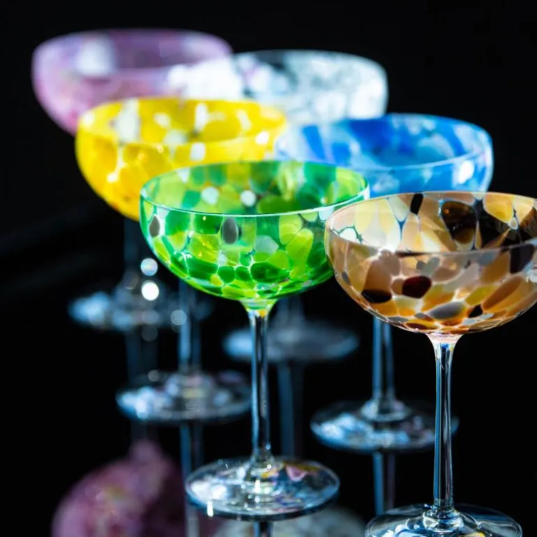 SWIRL champagne multiglass er alle unike, det finnes ikke to like. Glasset rommer 22 cl og er godt å holde i. Det kommer i seks vakre og fristende fargemikser; rosa, grønn, blå, gul, brun og hvit. SWIRL er ekte norsk kunsthåndverk laget av det fineste krystall. Hvert champagneglass er munnblåst av yrkesstolte glassblåsere i glasshytta på Magnor Glassverk, sammen med Camilla Prytz selv.
