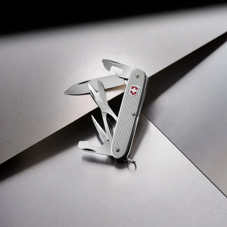 Pioneer X fra Victorinox er den første modellen i Pioneer-serien som er utstyrt med saks. I tillegg inneholder den funksjoner som stort knivblad, flaskeåpner, boksåpner, skrutrekkere og syl. Den sølvfargede Alox-overflaten gir et slitesterkt og elegant ytre.