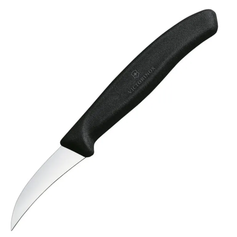 Victorinox Swiss Classic dekorkniv med 6 cm blad og ergonomisk sort håndtak er laget for presisjon og detaljer. Den buede formen – kjent som Bird’s Beak – gir kontroll og nøyaktighet ved dekorering og utskjæring i frukt og grønnsaker. Dette gjør den ideell for å forme blomster, figurer og fine garnityr.