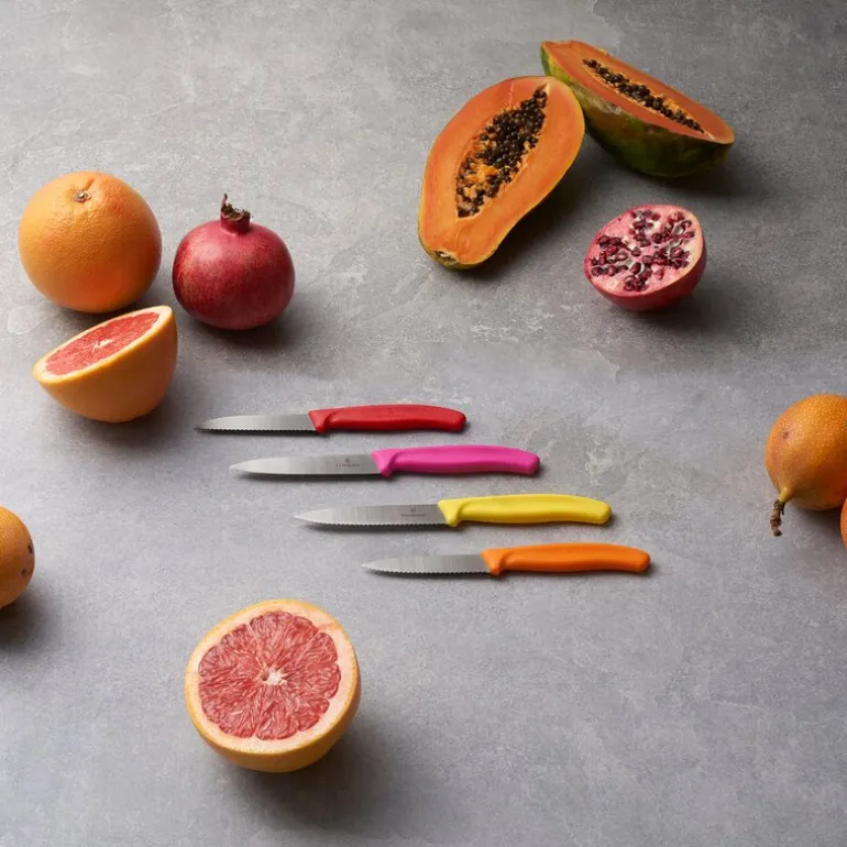 Den tydelige fargen på håndtaket gjør den enkel å finne i kjøkkenskuffen, og den ligger godt i hånden under bruk. Victorinox har lang erfaring med å lage funksjonelle kniver til både profesjonelle og hjemmebrukere, og denne modellen kombinerer skarphet, komfort og brukervennlighet i ett og samme redskap.