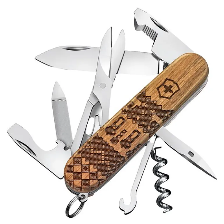 Swiss Spirit Limited Edition fra Victorinox kombinerer tradisjon og funksjon i en unik lommekniv med 13 praktiske verktøy. Skaftet er laget i ekte valnøttre og har et lasert mønster som symboliserer sveitsiske verdier og landskap. Blant funksjonene finner du saks, skrutrekkere, boksåpner og stanse- og sysyl.
