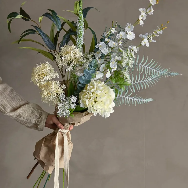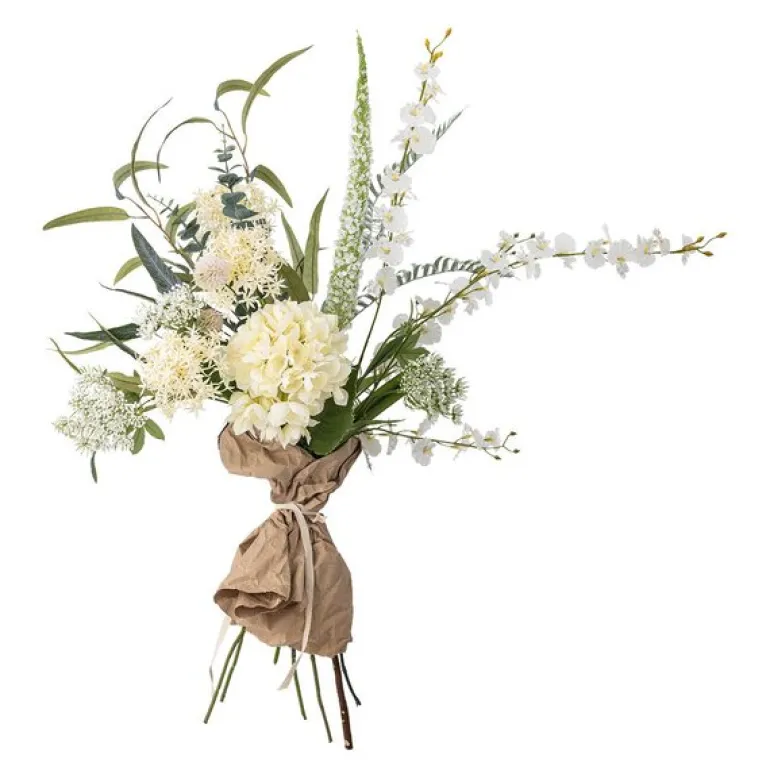 Symphonie kunstig bukett fra Bloomingville bringer en følelse av ro og harmoni til hjemmet ditt. Buketten består av delikate hvite blomster, kremfargede toner og subtile grønne innslag, som skaper et balansert og naturlig uttrykk. Hver stilk er nøye utformet for å gjenskape skjønnheten i en levende blomsteroppsats.