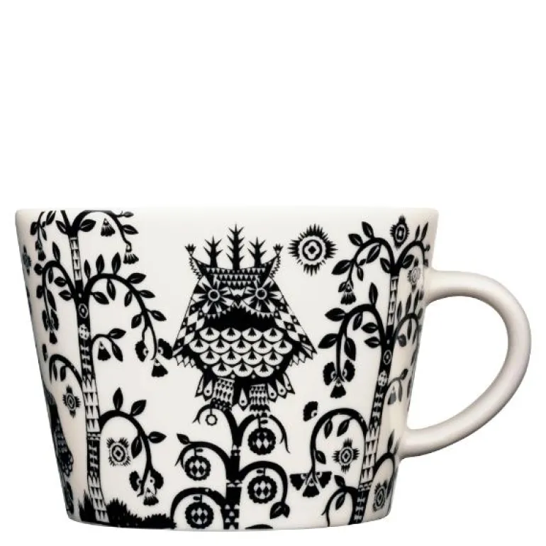 Taika kaffe-/cappuccinokopp 0,2L svart. Taika betyr magi på finsk. Et spennende mønster på rene, moderne former som utfordrer fantasien. Utforsk detaljene i dekoren og la deg overraske.