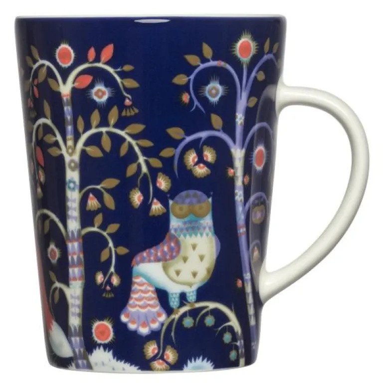 Taika krus 30 cl blå fra Iittala. 0,3 l Taika-kruset er det perfekte valget for både varme og kalde drikker. Kruset kombinerer Klaus Haapaniemis kunst med Heikki Orvolas stilige design. Krusets blå bakgrunnsfarge fremhever de rike detaljene i uglemotivet. Kombinér krus i forskjellige farger for å skape en effektiv helhet. En utmerket gave.