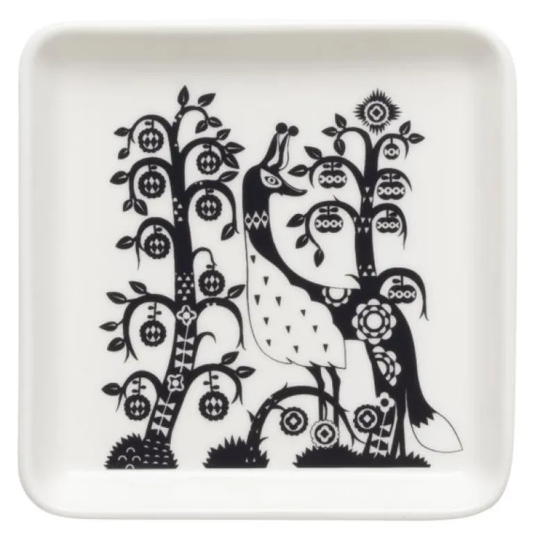 Taika tallerken kvadrat 12×12 cm svart fra Iittala. Klaus Haapaniemis kunst og Heikki Orvolas design gir borddekkingen et magisk preg. Den kvadratiske sorte 12×12 cm tallerkenen i Taika-serien er både praktisk og dekorativ, egnet til små forretter og godbiter og til servering. Den allsidige tallerkenen liver også opp innredningen din og passer for eksempel til oppbevaring av smykker. En god gaveidé.