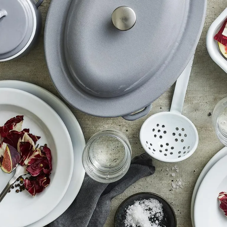 Kockums emaljerte tallerkener og skåler er laget med doble lag av høykvalitets emalje som effektivt motstår skitt og flekker, og som er enkle å rengjøre. Produktene er designet for å fungere på alle typer komfyrer, inkludert induksjon og gass, og kan også settes direkte i ovnen (ikke egnet for mikrobølgeovn).