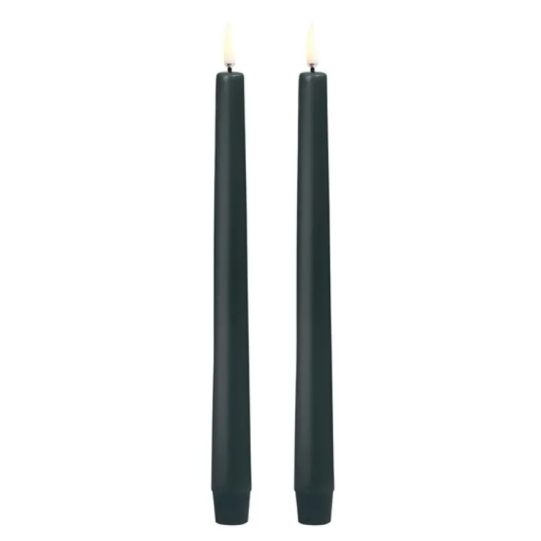 To svarte Taper Candles fra Uyuni Lighting (2,3×25 cm) er en perfekt kombinasjon av klassisk eleganse og moderne LED-teknologi. Disse kronelysene har den patenterte 3D-flammen som skaper et realistisk utseende av levende lys uten risikoen for brann, sot eller skadelige stoffer. Hvert lys drives av 2 AAA-batterier (ikke inkludert) og har en imponerende brenntid på opptil 200 timer.