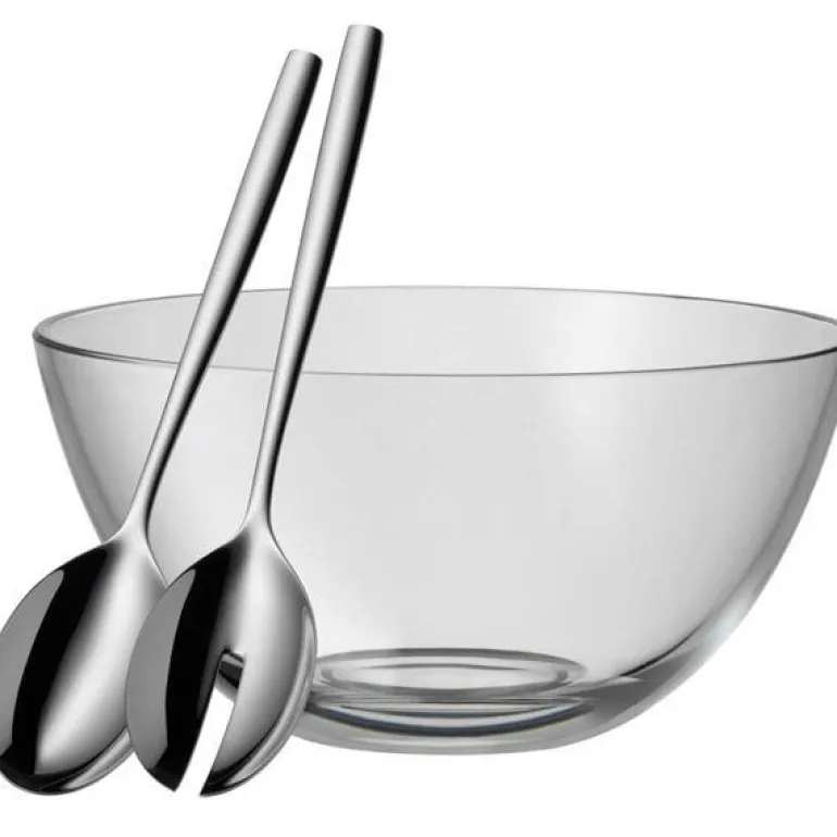 En herlig salat i flott innpakning! Med Taverno får vitaminene ekviperingen de fortjener. Takket være den elegante, gjennomsiktige aromaen og den smaksnøytrale glasskålen er selve salaten stjernen i showet. Settet fullendes med polert bestikk i Cromargan® rustfritt stål 18/10 som garantert bevarer formen og gir høy motstandsdyktighet mot syreholdig mat. Kolleksjonen fås i to størrelser, tåler oppvaskmaskin, og dens tidløse design fullender all slags kjøkkenutstyr.