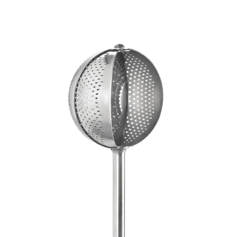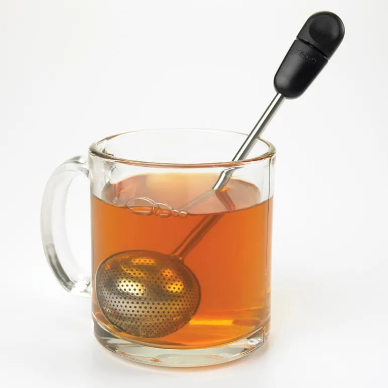 Te-egget har et langt skaft som passer til de fleste bokser, kopper og krus. En smart twist-funksjon i håndtaket åpner og lukker te-egget og sikrer at te-egget lukkes og tebladene forblir inne i te-egget, mens du brygger teen.