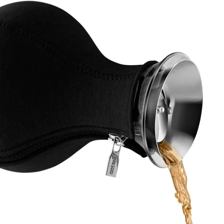Teblad uten garvesyre, som kan trekkes i ubegrenset tid, kan fylles direkte på glasskannen. Sett i filteret, og bladene blir værende i kannen når du heller. Hvis teen skal trekke i begrenset tid, fylles tebladene i stedet ned i filteret. Trykk stempelet helt ned når trekketiden er over, og skjenk opp – du trenger verken å fjerne teblader eller filteret. Tebryggeren er dryppfri og er utstyrt med et vippelokk som åpner seg automatisk når du skjenker. Neoprentrekk holder teen varm.