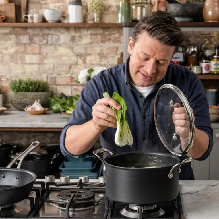 Tefal, en veletablert fransk produsent av kvalitetskjøkkenutstyr siden 1950-tallet, har med Jamie Oliver skapt et populært utvalg av kjøkkenserier, inkludert Jamie Oliver Everyday, Jamie Oliver Premium og Classic. Dette samarbeidet har resultert i brukervennlige og slitesterke produkter som passer alle hjemmekokker, fra stekepanner og gryter til wokpanner og støpejernsgryter.