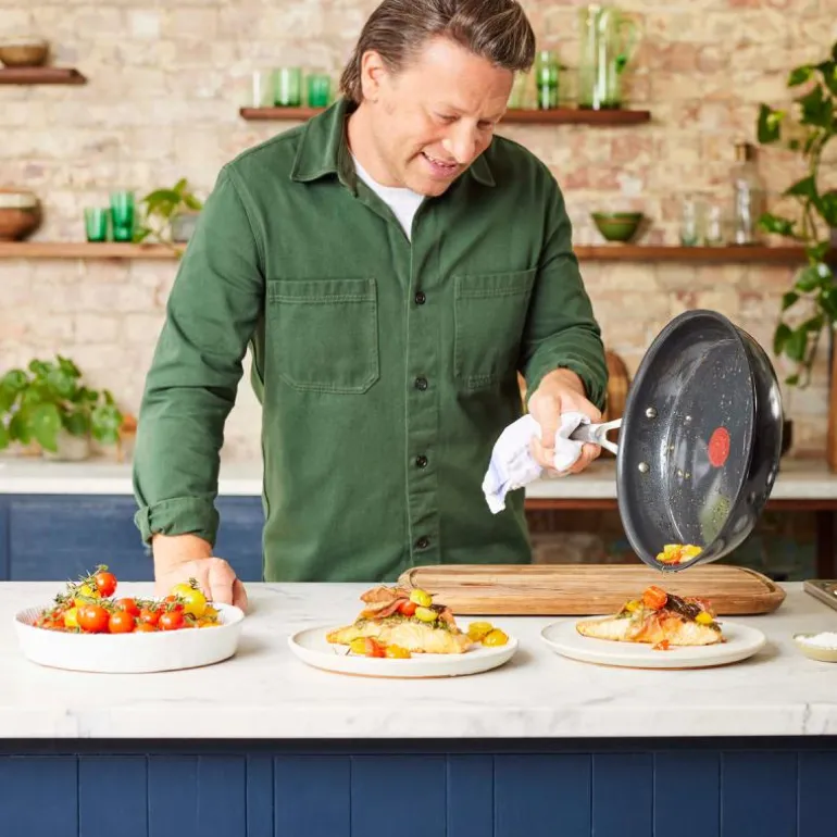 «Ikke bare er jeg begeistret for denne serien av keramiske kokekar, men jeg er også imponert over deres effektivitet. Produktene trenger ikke å være ekstremt varme for å fungere optimalt – de er ideelle for lett steking og sautering, noe som også bidrar til deres holdbarhet. Denne typen innovasjon har gjort arbeidet med keramiske kokekar fra Tefal til en sann glede de siste to tiårene. Vi deler begge målet om å oppmuntre flere til å lage deilig og sunn mat fra bunnen av.» – Jamie Oliver