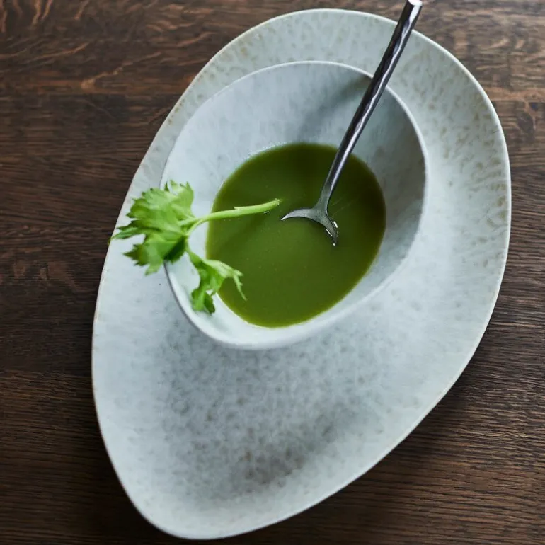 Den subtile marmoreringen og naturlige fargevariasjonen gjør at ingen deler er like, noe som gir serviset sjel og karakter. Glasuren fremhever overflaten, og den høye brenningstemperaturen sikrer slitestyrke som tåler både daglig bruk og profesjonell servering.