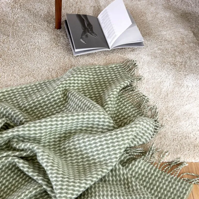 Teide ullpledd 120 x 180 cm i fargen dempet grønn fra Høie, er et mykt og varmt pledd i 100 % ren ull, perfekt for kalde dager og avslappende stunder. Ullens naturlige pusteevne gir behagelig varme uten å skape fuktighet, samtidig som materialet isolerer godt og regulerer temperaturen på en naturlig måte.