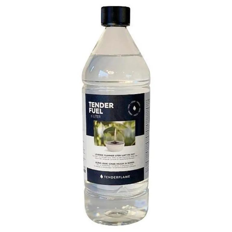 TenderFuel er et nytt og revolusjonerende drivstoff for brennere produsert av TenderFlame. Gir flotte flammer og brenner helt rent. TenderFuel kan lagres i ubegrenset mengde og er ikke giftig eller kategorisert som brannfarlig.