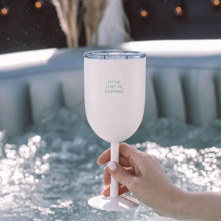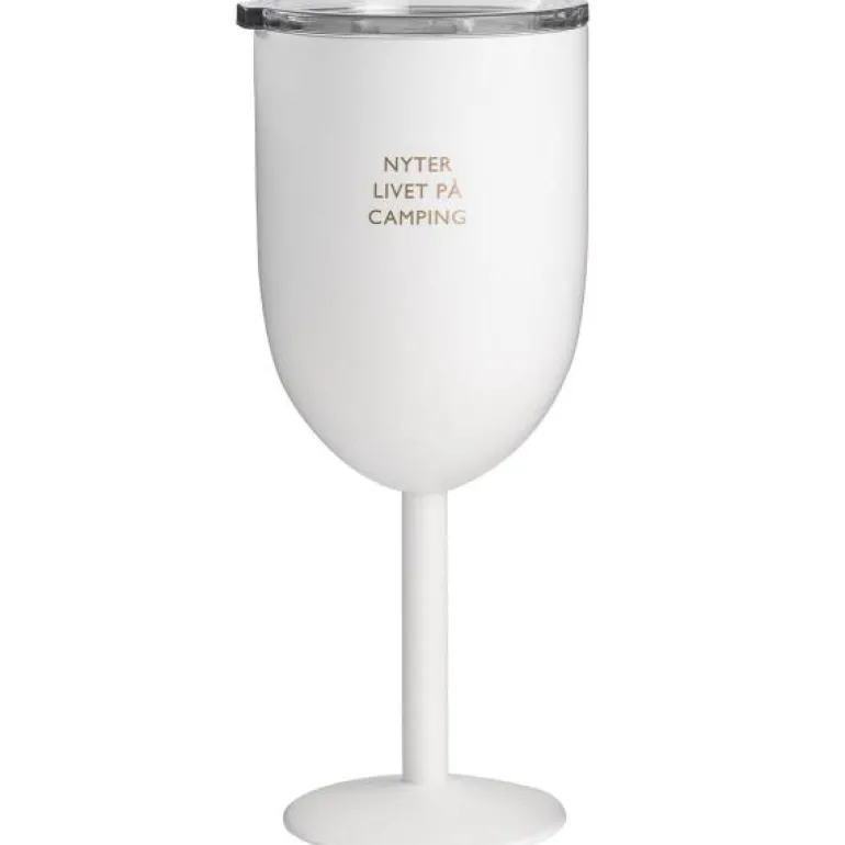 Med NYTER LIVET PÅ CAMPING – termoglass m/stett holder drikken seg kald. I tillegg slipper du insekter som lurer seg ned i drikken din, siden den kommer med praktisk lokk m/lukkemekanisme. Glasset er laget av rustfritt stål med dobbeltisolerte vegger. NYTER LIVET PÅ CAMPING – termoglass m/stett har en matt hvit farge. Teksten er lasergravert og sølvfarget.
