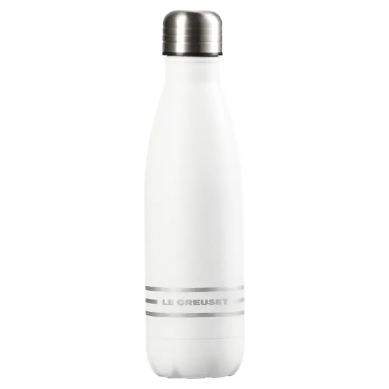 Drikkeflasken er laget i rustfritt stål. Dobbeltsidig, vakuumisolert konstruksjon med et indre kobberlag som holder utsiden av flasken fri for kondens 24 timer KALDT – 12 timer VARMT. Logo på lokket med Le Creusets tre ikoniske ringer samt trykt logo på flasken for enkel gjenkjenning. Fem års garanti mot produksjons- og materialfeil. Hver drikkeflaske er pakket i en fin, sylindrisk boks, og esken er resirkulerbar.