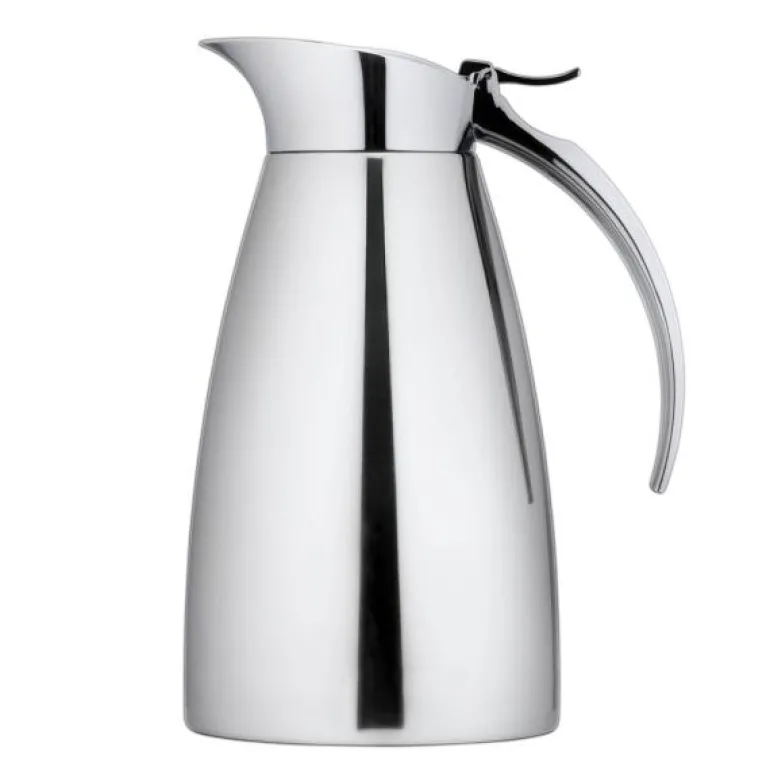 Termokanne 0,6L i rustfritt stål fra det finkse merket Heirol. Termosen kan enkelt betjenes med en hånd, og det flotte designet gjør at den gjerne får stå fremme på kaffebordet. Denne termosen holder drikken din kald eller varm i opptil 6 timer.