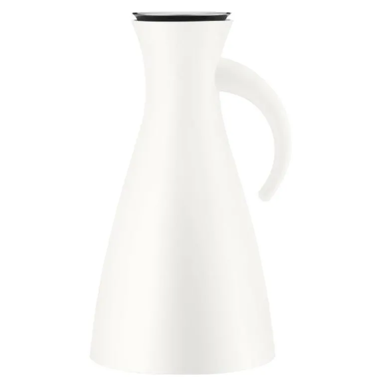 Termokannen fra Eva Solo i hvit er 100 % dryppfri. Den elegante termokannen har en patentert hellekant i rustfritt stål, som heller varm kaffe og te i koppen – uten å søle en dråpe.