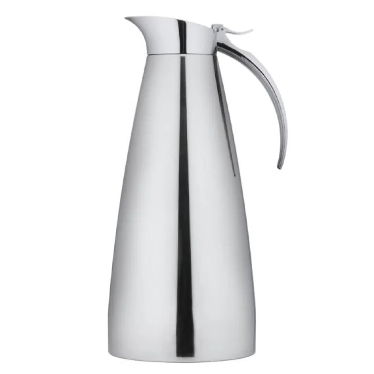 Termokanne 1 ltier i rustfritt stål fra det finkse merket Heirol. Termosen kan enkelt betjenes med en hånd, og det flotte designet gjør at den gjerne får stå fremme på kaffebordet. Denne termosen holder drikken din kald eller varm i opptil 6 timer.