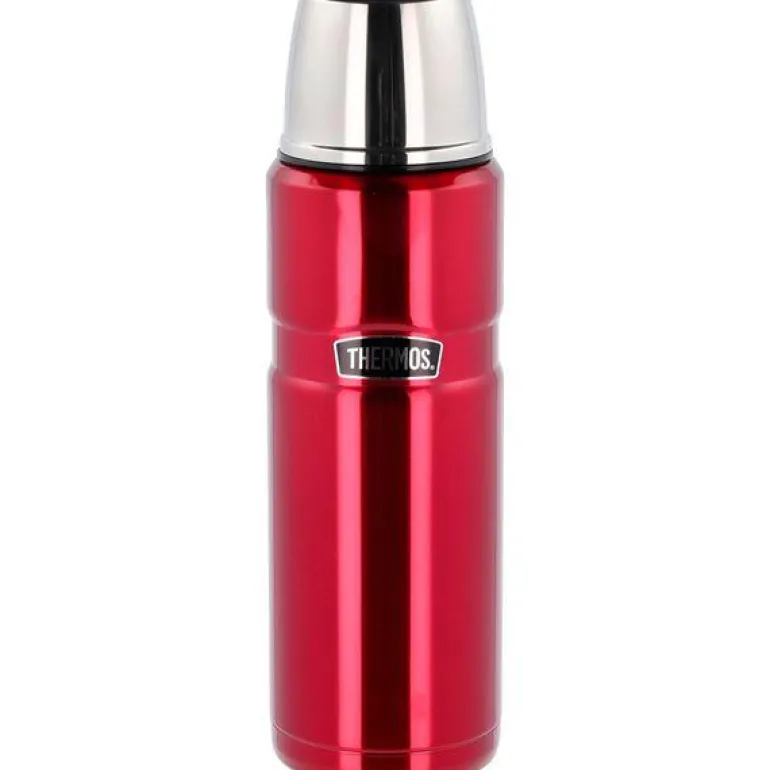 Thermos Stainless King 1,2 liter termos av rustfritt stål uten hank. Lokket kan brukes som kopp, og flasken er velegnet til både kald og varm drikke. Vi anbefaler at flasken forvarmes med varmt vann fra kranen før du fyller den med ønsket drikke.
