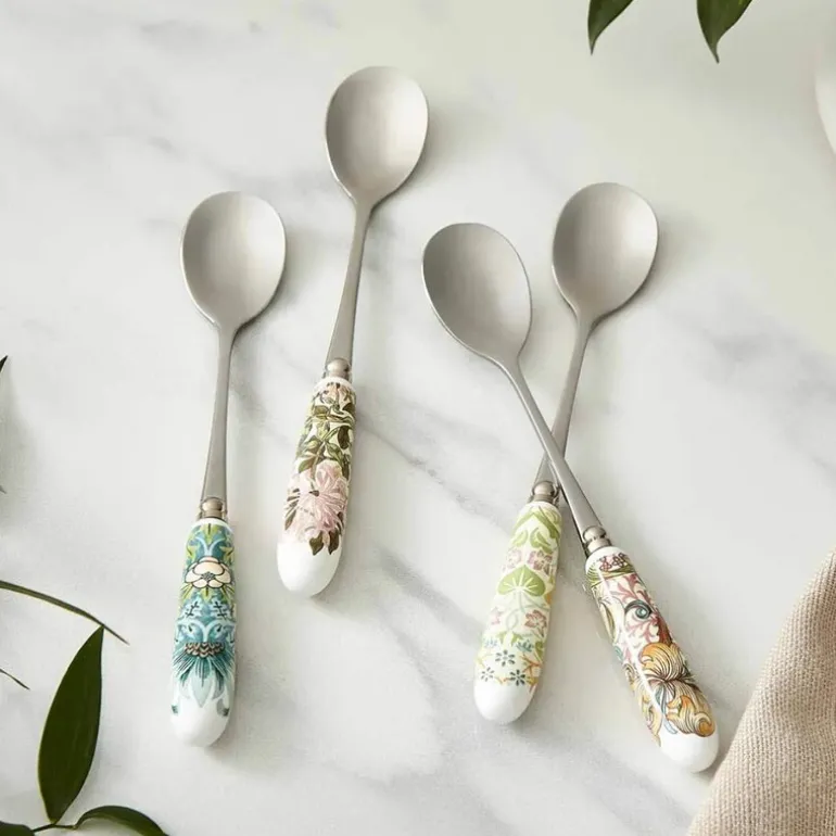 Morris & Co byr på pene farger og mønster som går i vårens toner. Kombinerte mønster og farger gir serien en fantastisk fresh følelse. I dette settet får du 4 stk av Morris & Co vakre teskjeer. Like perfekte til te som til desserten.